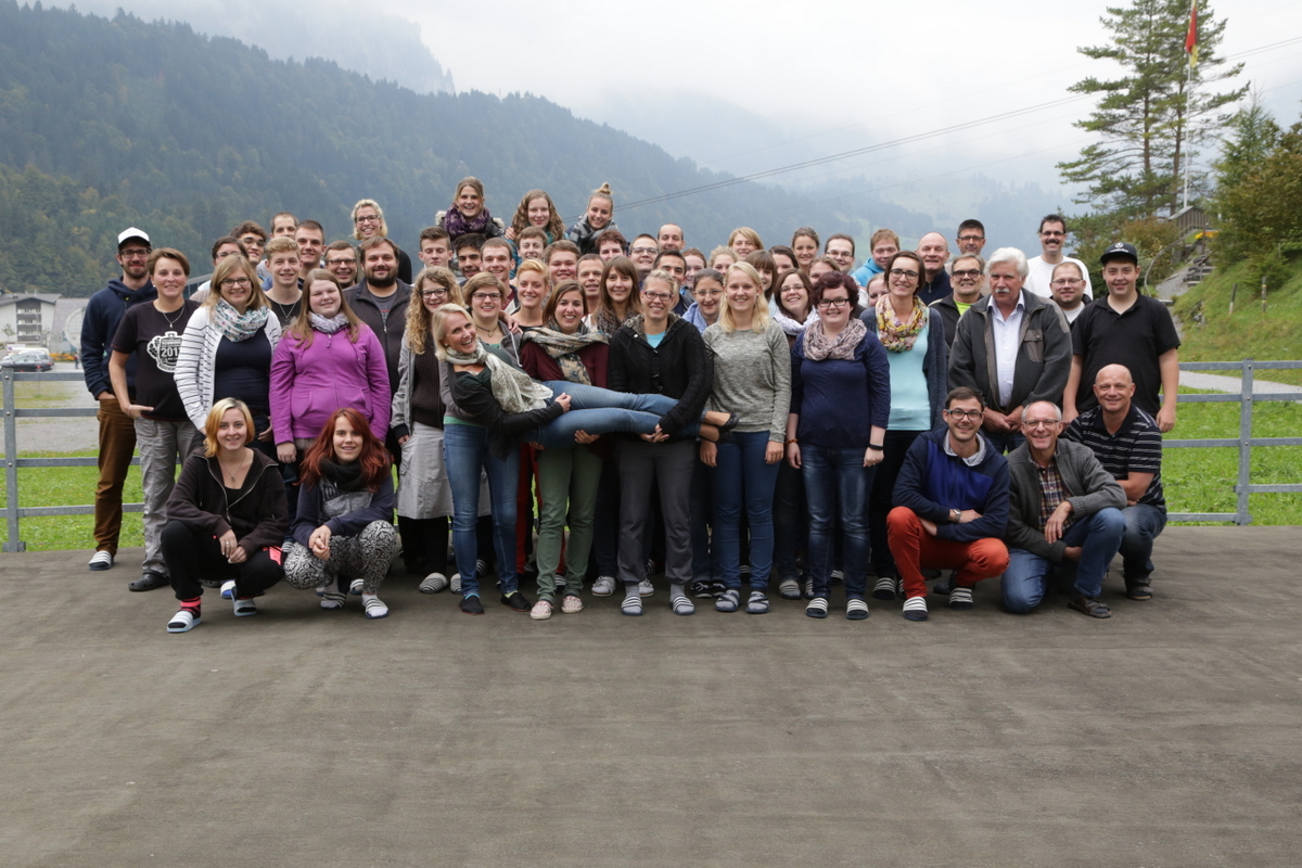 Der Mittwochnachmittag war wie jedes Jahr reserviert für ein Spezialprogramm. Diesmal bestand es aus einer Gondelfahrt auf die Brunni, wo uns ein atemberaubendes Panorama erwartete, mit anderen Worten und ohne Ironie will das heissen dichten Nebel. Doch mit unseren sonnigen Gemütern konnte uns auch die dickste Nebelsuppe nichts anhaben. Auf der Brunni wagten wir alle zuerst eine rasante Abfahrt auf der Rodelbahn und machten danach in kleineren Gruppen eine „Posten-Wanderung“ zurück nach Engelberg.